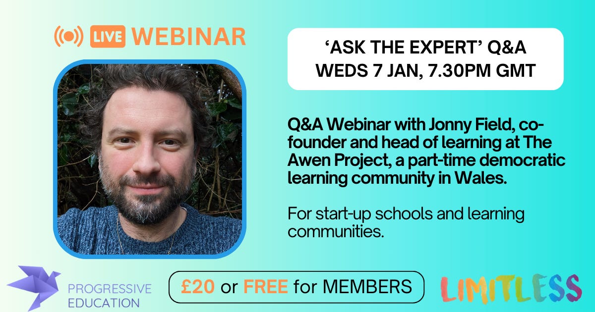 Jonny Field, co-founder and head of learning at The Awen Project, a part-time democratic learning community in Wales.